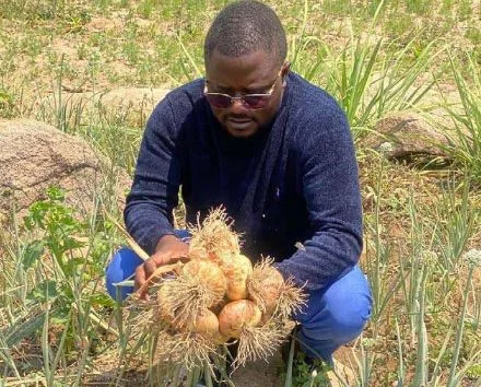 Conversamos com um senhor que, na altura, já explorava, que nos deu algumas explicações do que seria necessário, com quanto devíamos começar, deu-nos lições técnicas e estratégicas para alguém que começa agora. Naquela altura, queríamos arrendar um hectare e ele aconselhou-nos a arrendar meio. Experimentamos e dividimos o meio hectare em três: em uma parte colocamos a cebola, em outra parte a beringela e outra tínhamos colocado a cebola, em 2016. Essa produção deu-nos um resultado significativo e incentivou-nos bastante para que, a partir daquele meio hecta- re, fôssemos arrendar dois hectares. E os hectares que nós arredamos, naquela altura, dividimos também: num hectare semeámos o milho, no outro hectare semeámos o feijão.