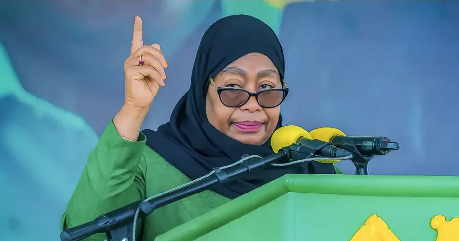 Inicialmente saudada por ter flexibilizado as restrições impostas por Magufuli, foi posteriormente acusada de reprimir os opositores, nomeadamente antes da eleição. A cerimónia de investidura, que não esteve aberta ao público, ao contrário das anteriores, contou com a presença de dezenas de membros do Partido da Revolução (CCM, na sigla em suaíli), representantes do corpo diplomático e vários presidentes africanos, entre eles, Daniel Chapo, Presidente moçambicano. A votação foi marcada principalmente por um elevado nível de violência.