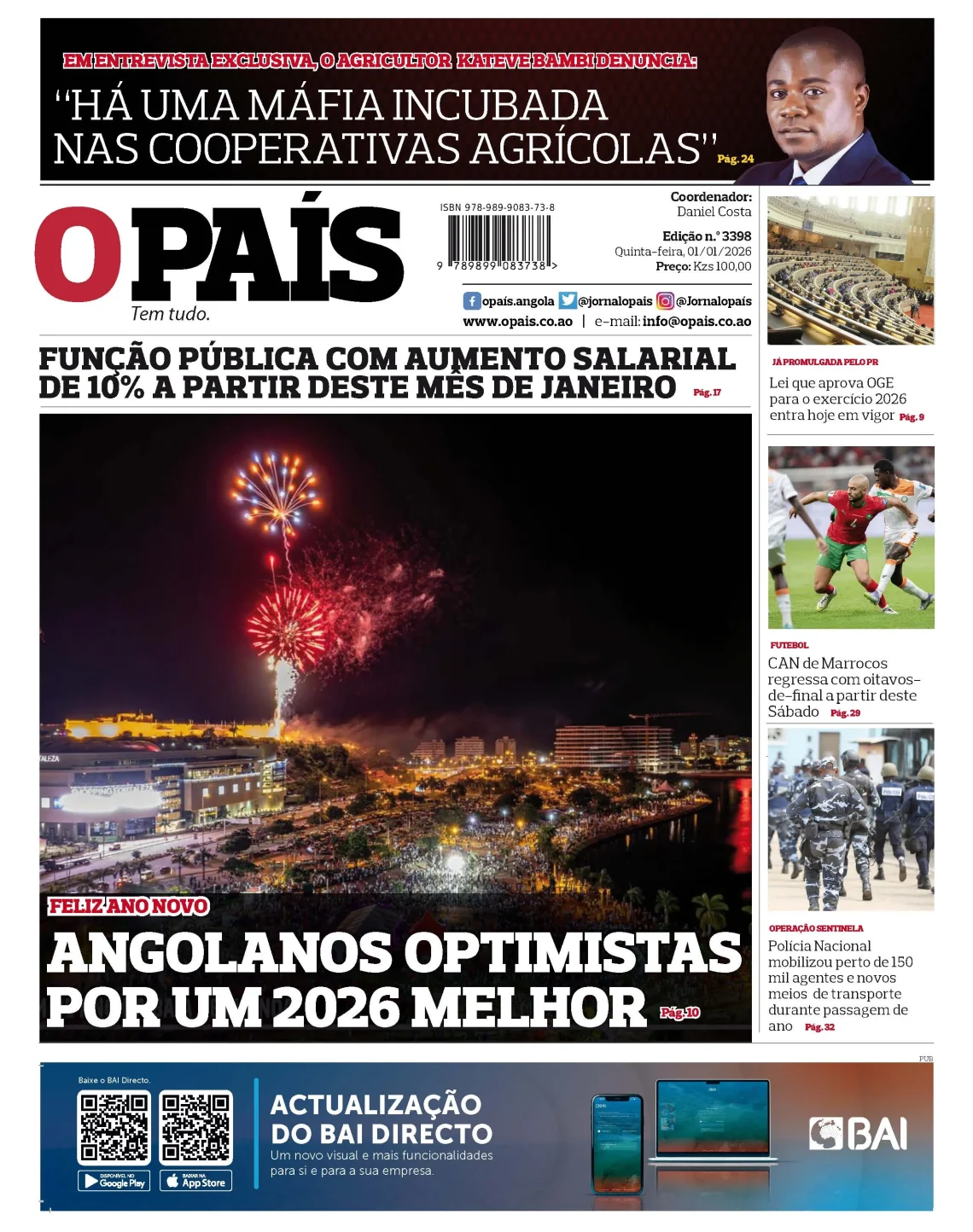 No Ano Novo, o farol desta franja do “cosmos” deve ser também a saúde. Sem ela, muitos objectivos caem por terra e o desejo de atingir voos altos fica na esquina do irrealizável. Deste modo, 2026 tem um significado muito especial. Pois, conexões objectivas permitirão colocar o ano transacto no museu e dele retirar-se somente os melhores momentos.