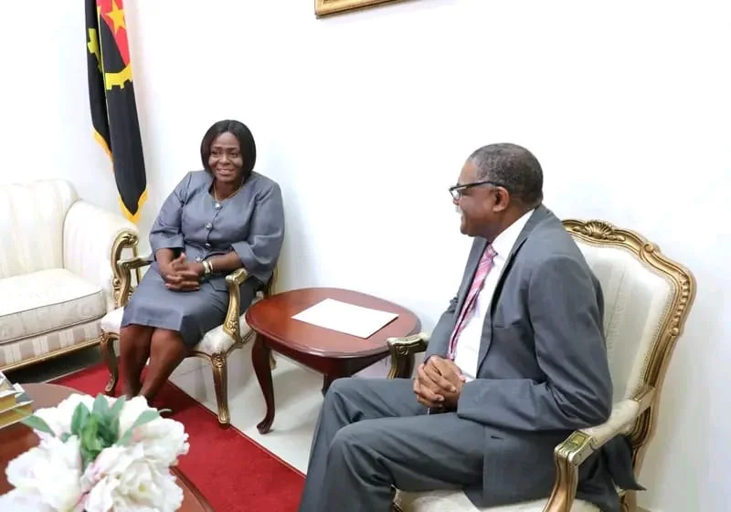 A diplomata foi recebida por Domingos Custódio Vieira Lopes, secretário de Estado para a Cooperação Internacional e Comunidades Angolanas, em representação do chefe da diplomacia angolana.