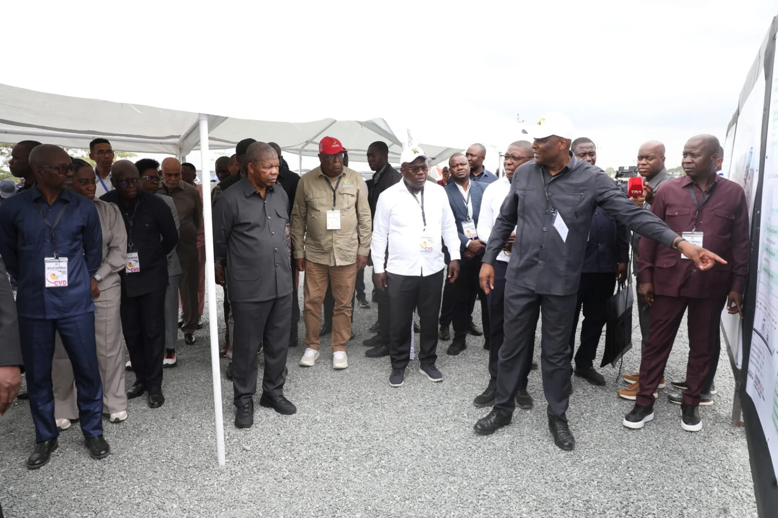 À chegada, João Lourenço recebeu cumprimentos do governador provincial, Auzílio Jacob, do ministro das Obras Públicas, Urbanismo e Habitação, Carlos dos Santos e de outros membros do Executivo.