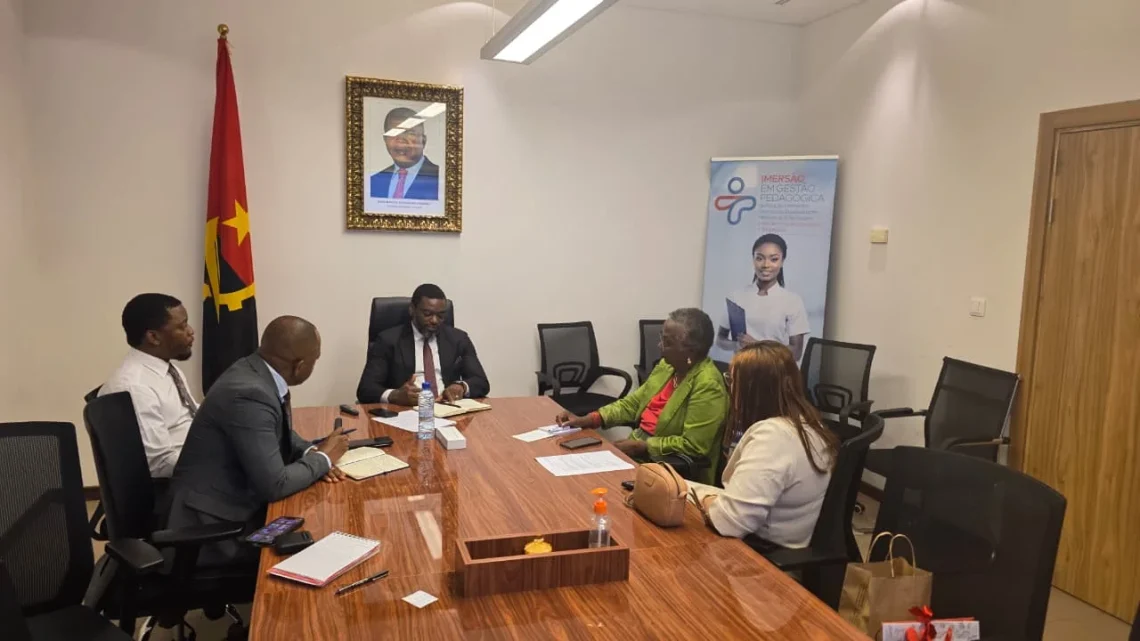 A reunião foi presidida pelo coordenador e gestor técnico da UIP-PFRHS, Job Monteiro, que esteve acompanhado pelo neurocirurgião Djamel Kitumba, pelo consultor de formação e especialista em enfermagem, Adão Chimuanji, e pela especialista em comunicação, informação e gestão do conhecimento, Neusa Cumbe.