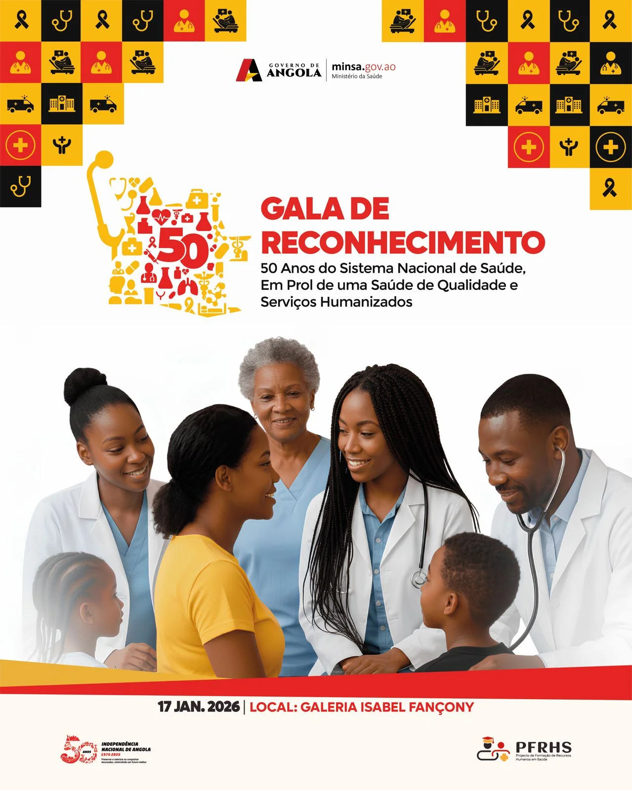 O Ministério da Saúde (MINSA) vai realizar, neste Sábado, 17, a partir das 07h00, no Espaço Galeria José Fançony, um acto solene de homenagem a 656 funcionários do sector da saúde, em reconhecimento ao serviço relevante e ao contributo exemplar prestado na defesa da saúde pública em Angola.